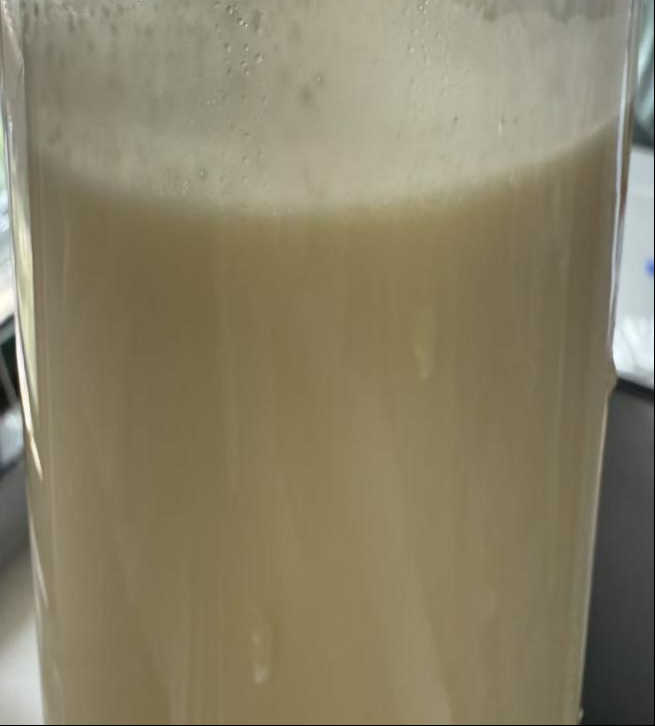2、 先用手持搅拌器充分搅拌,打碎大颗粒物质。