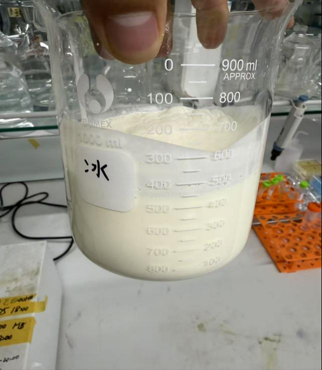 4、 在均质过程中用玻璃搅拌棒在进料口搅拌,防止蛋白粉沉淀速度过快,导致堵塞。